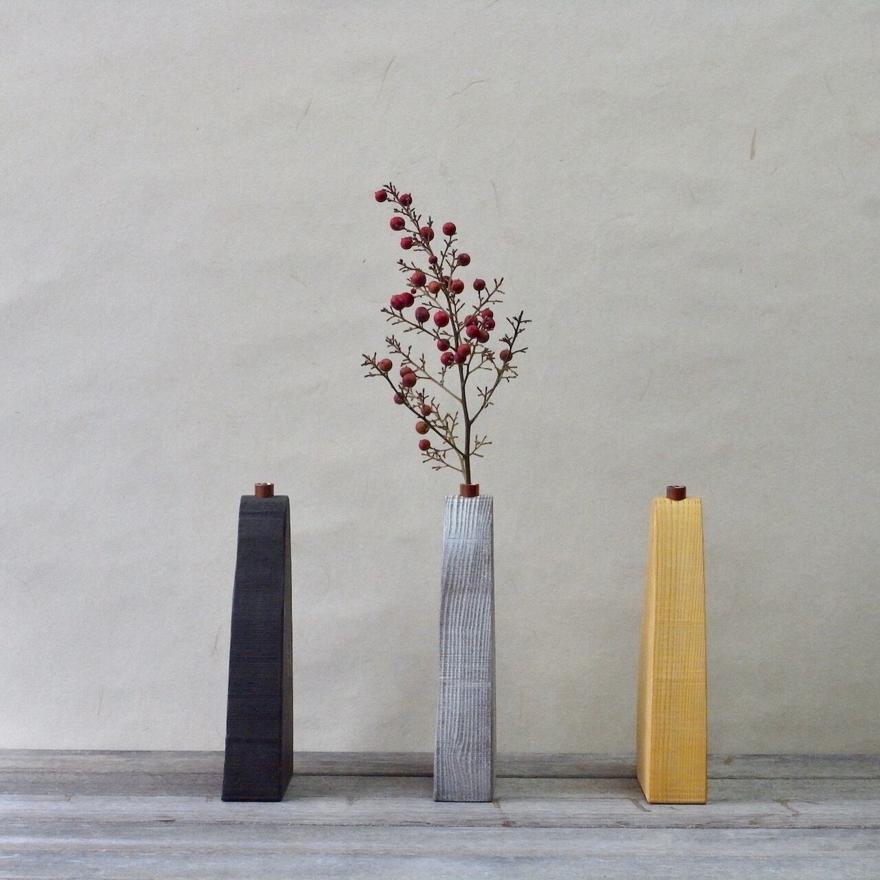 一輪挿しの向きによって表情、雰囲気が変わりますので、お花や気分によって変えて頂けたらと思います。
